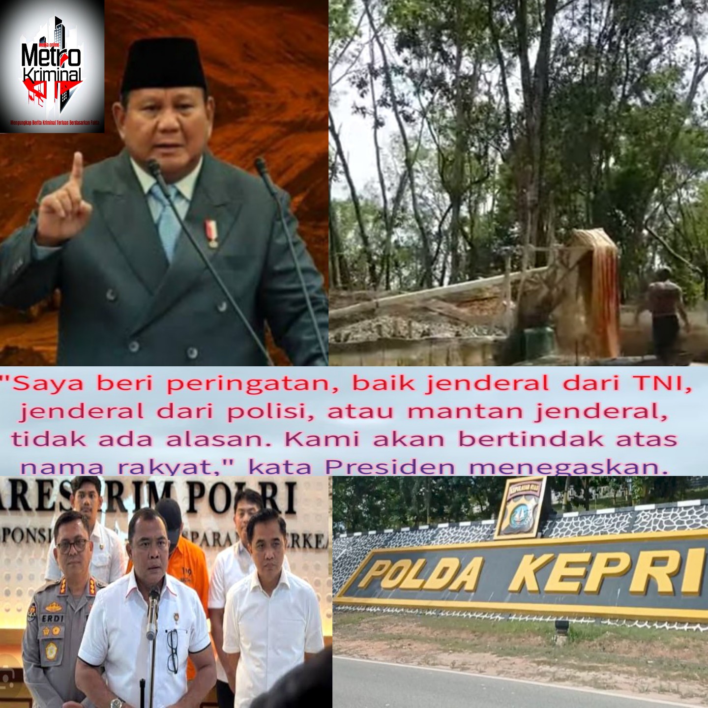 Saya beri peringatan, baik jenderal dari TNI, jenderal dari polisi, atau mantan jenderal, tidak ada alasan.Kami Akan tindak Babinkamtibmas Kel Batu Besar Pinjam Nama Orang Lain Untuk Mengelola Tambang Pasir Darat Ilegal di wilayah (KKOP) Bandara Hang Nadim